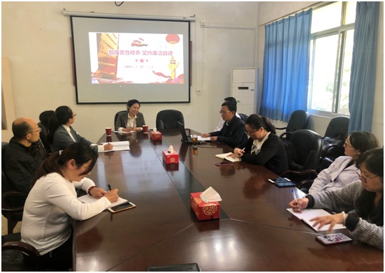 第一党支部由党总支副书记谈立群讲党课,他以《加强党性修养,立足平凡岗位,坚持廉洁自律》为题,用案例和故事形象生动地阐明了党性修养的含义、新时期加强党性修养的重要性和内容,并从检视自身问题入手,就如何立足平凡岗位,坚持廉洁修身作了深入剖析。他强调,“打铁还需自身硬”,清正廉洁要从道德修养入手,炼就一身“铁”的本领;党性修养至关重要,党员干部一定要立足平凡岗位,坚守初心,严守党规党纪,全心全意为师生服务。