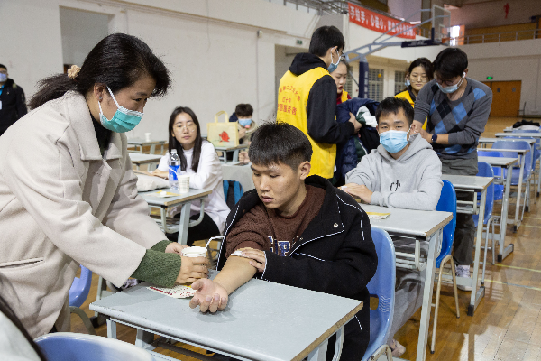 为继续深入落实党史学习教育,扎实开展“我为师生办实事”实践活动,进一步增强党员的奉献意识和责任担当。11月8日至10日,学校无偿献血活动在体育馆进行,后勤服务中心党总支组织全体党员及部分教职工开展了无偿献血志愿服务主题党日活动,为献血师生提供热心周到的服务。活动期间,徐余法副校长到现场慰问献血师生和志愿者。