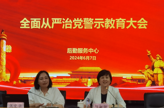 为深入推进党纪学习教育走深走实,切实教育引导后勤广大党员和职工做到学纪、知纪、明纪、守纪,6月7日下午,后勤服务中心在19号楼201会议室举行全面从严治党警示教育大会,中心党政领导班子成员、全体教职工、自营食堂员工、公寓管理人员、物业管理人员参加此次会议,会议由中心党总支书记陈敏俐主持。