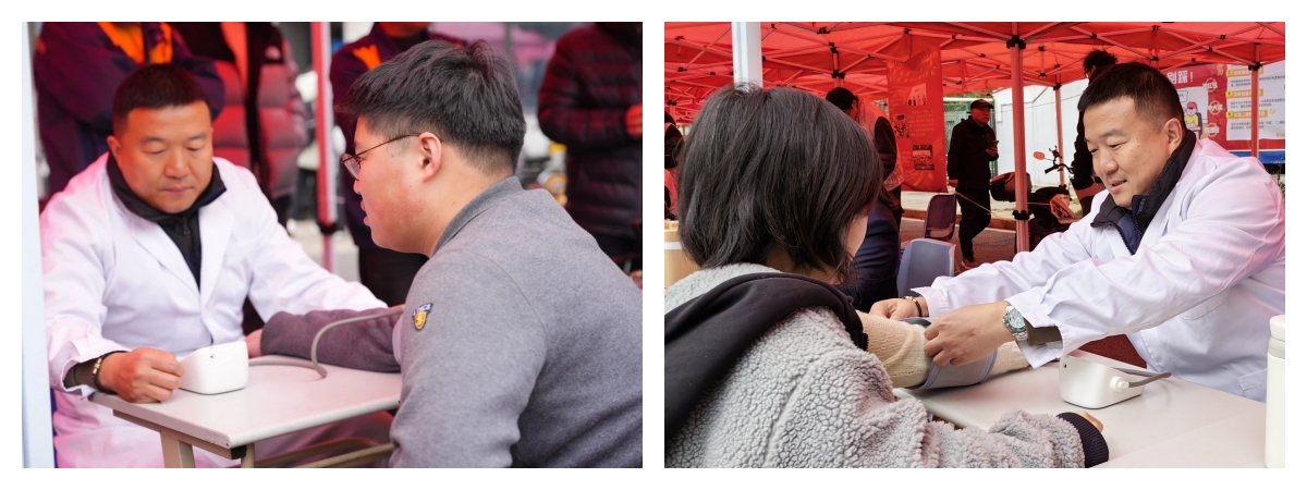 “医路同行”健康守护:血压测量、健康咨询服务点。
