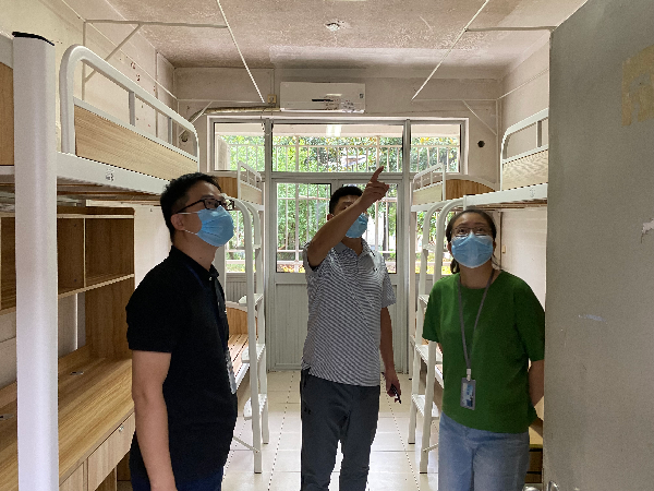 新学期学生们返校在即,为扎实做好返校前准备工作,确保后勤管理各项工作平稳有序推进,9月14日上午,后勤服务中心党总支书记陈敏俐带领党政班子成员,赴相关区域开展关于学生公寓、校园环境治理、餐饮保障、食品安全、防台防汛等方面的专项检查。面对当前复杂严峻的疫情防控形势,后勤服务中心按照学校疫情防控总体要求,毫不松懈,全面落实各项后勤保障措施,确保校园平稳有序运行。