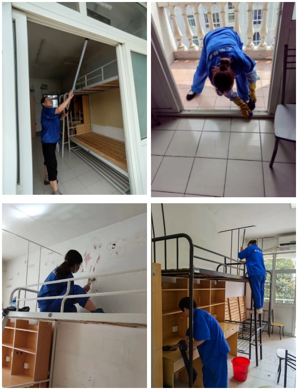 能源修缮科在整个暑期期间对所有的新生公寓进行全面维保,宿管处也对公寓进行了全方位的清扫和消杀,根据新生大数据,宿管阿姨和维保叔叔们为部分床铺加长加固,确保每一个学生能睡得舒心。公寓工作人员24小时在岗,及时为新生解决各类生活问题。
