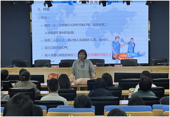 4月12日下午,校工会和后勤服务中心于19号楼201报告厅联合举办了第一期教职工心肺复苏及AED急救知识技能培训。